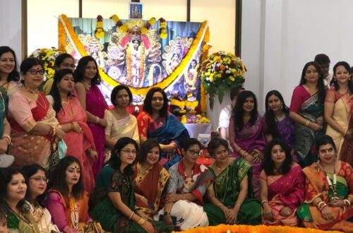 I got transferred to Jamshedpur sometime in 2012 and obviously felt that I will be denied a chance to be a part of the Bharati Agomoni team. The Team had other ideas and since I was going to be physically present in Bangkok during Pujas, any which way, the team felt that I should be joining practice sessions on Skype!!!! It so happened that a rehearsal session was planned at Jay Shankar’s house followed by dinner and I joined on Skype. Those days the internet connections were not very robust and it so happened that I kept on singing on Skype whilst the others physically present in Bangkok were eating sumptuous mutton curry (Jay’s patented slow cooked dish). Talk about being dedicated!!!!