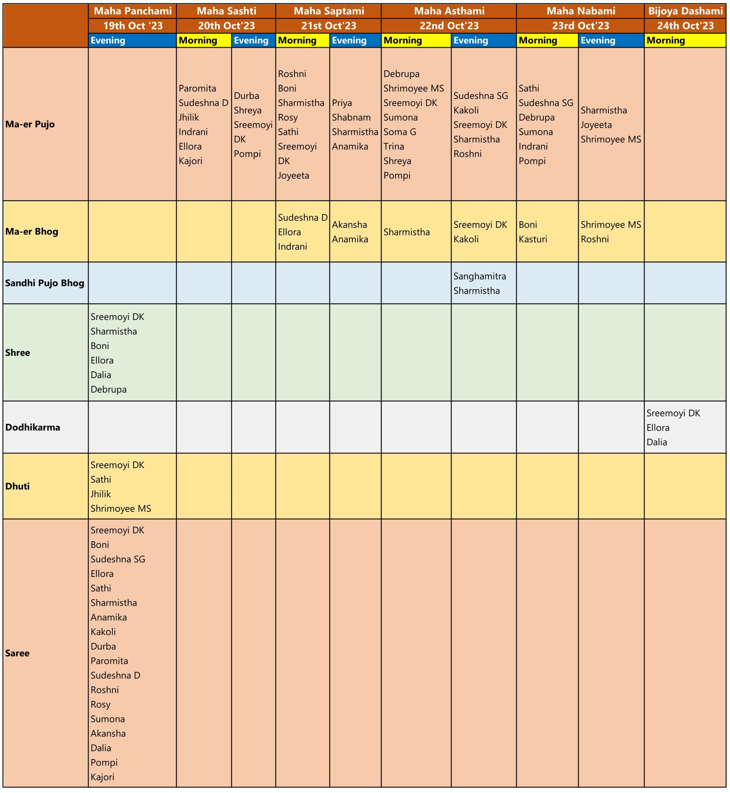 Durga Pujo 2023 – Bharati Ladies – Roles & Responsibilities